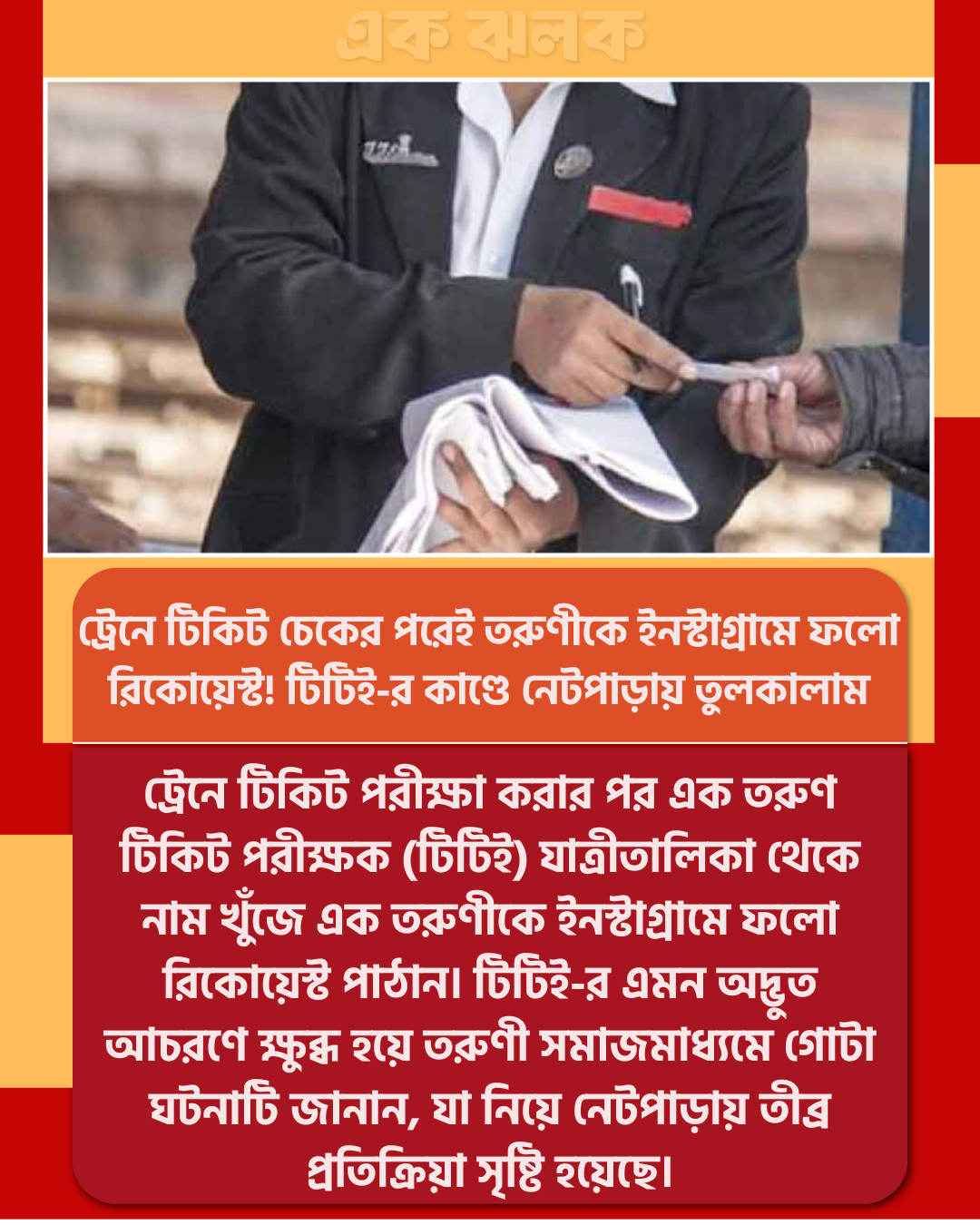 ট্রেনে টিকিট চেকের পরেই তরুণীকে ইনস্টাগ্রামে ফলো রিকোয়েস্ট! টিটিই-র কাণ্ডে নেটপাড়ায় তুলকালাম